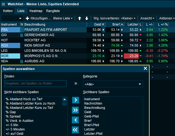 - Veränderung zwischen dem vorherigen Schlusskurs und dem aktuellen letzten Kurs (S/Letzer)