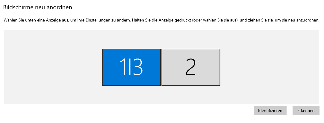 Wählen Sie in Windows Einstellungen | System | Anzeige. Oben sehen Sie die Monitore, die auf Ihrem System verfügbar sind: