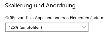 Wenn hier ein Wert größer als 100 % angezeigt wird, liegt eine Skalierung vor und die Qualität der Fensterdarstellung des Terminals sollte sich verbessern.