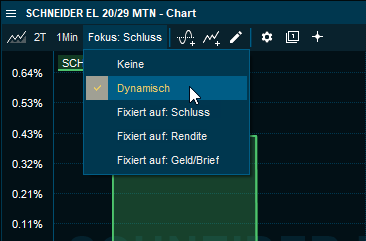 Sehen Sie hier ein Beispiel mit der Anleihe des Unternehmens Schneider, die 2029 fällig wird. Die Kursentwicklung der Rendite wird nun automatisch dargestellt.