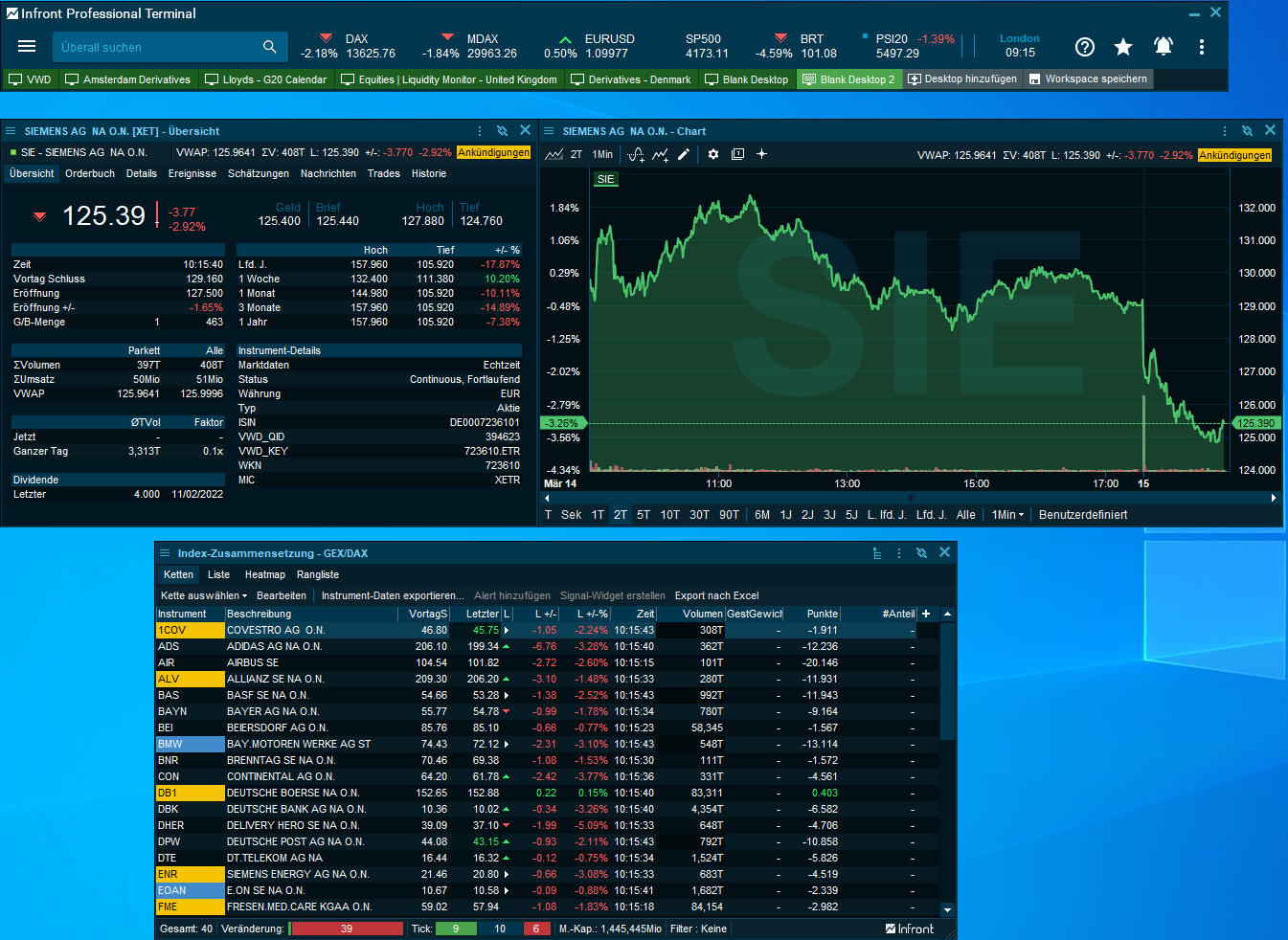Der Infront Professional Terminal war traditionell eine MDI-Anwendung (Multiple Document Interface) (Standardmodus).