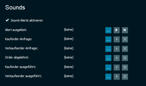 Musik, Soundclips oder jede andere Form von Sound können verwendet werden, um Sie zu informieren, wenn handelsbezogene Ereignisse stattgefunden haben.