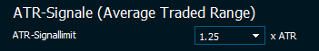Jeder dieser Werte ist ein Signal, aber nur die Signale oberhalb eines Mindestwertes sind von Interesse. Dieser Wert ist standardmäßig auf 1 ATR eingestellt, kann aber in den Einstellungen auf einen Wert zwischen 0,75 und 2 ATRs geändert werden.