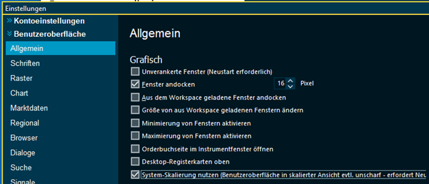 Wenn hier ein Wert größer als 100 % angezeigt wird, liegt eine Skalierung vor und die Qualität der Fensterdarstellung des Terminals sollte sich verbessern.