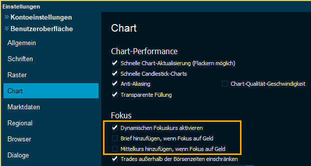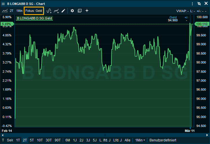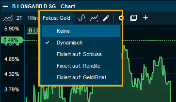 Bei Instrumenten mit geringer Liquidität sind die Geld-/Briefkurse die nächstbeste Lösung, wenn keine Daten über tatsächliche Transaktionen vorliegen. Diese Instanzen werden nun erkannt und der Chart wählt dynamisch den besten Chartparameter aus, der hinsichtlich Liquidität und Kursverfügbarkeit des Instruments für den jeweiligen Zweck geeignet ist.