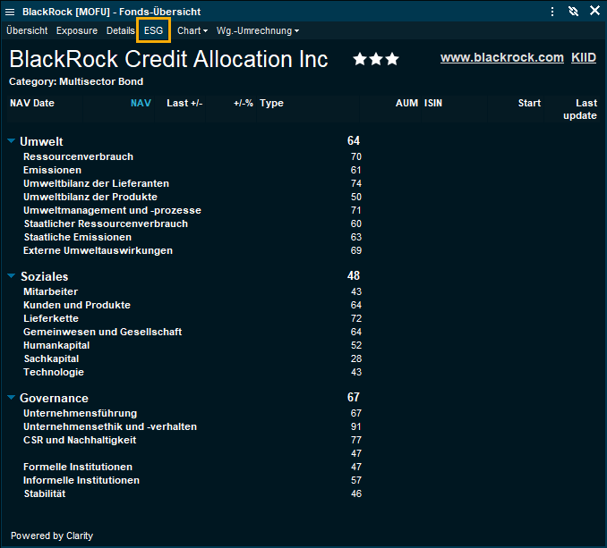 Die verschiedenen Fonds von Blackrock werden beispielsweise je nach Engagement und Diversifizierung unterschiedlich bewertet: