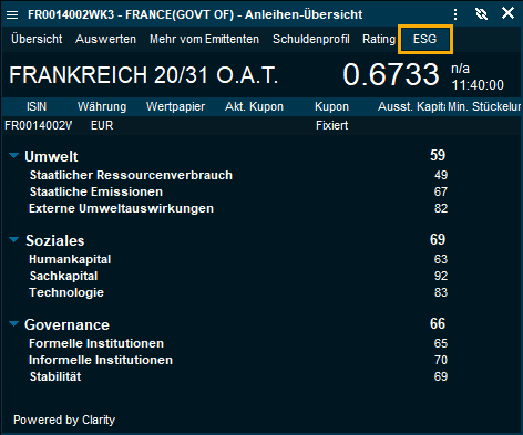 Der ESG-Datensatz ist jetzt auch in die "Fonds-Übersicht" und "Anleihen-Übersicht" integriert.