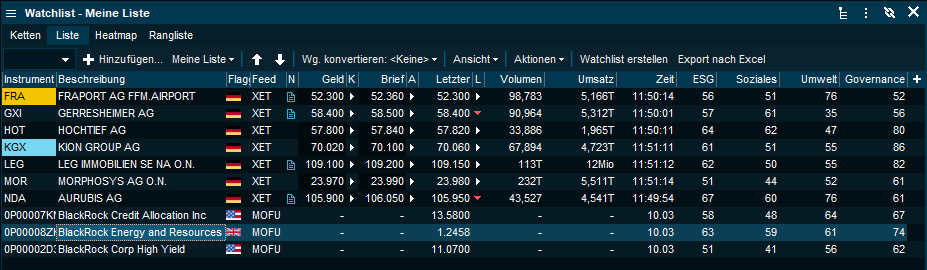 Dies lässt sich leicht in einer Watchlist oder mithilfe von Spalten für bestimmte Assets vergleichen: