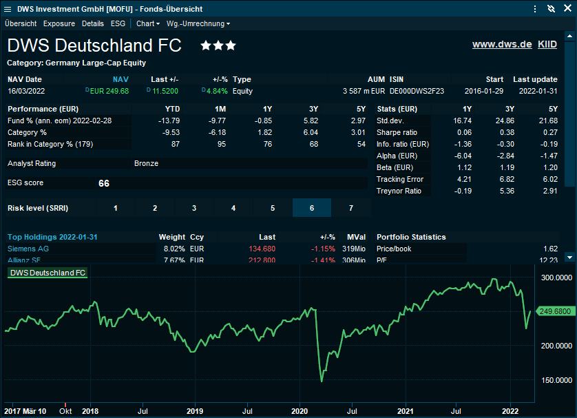 Sie können eine "Fonds-Übersicht" für die Fonds in der Liste mit Doppelklick auf einen Fonds öffnen.