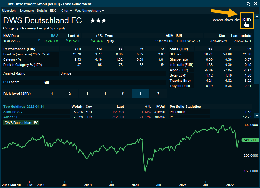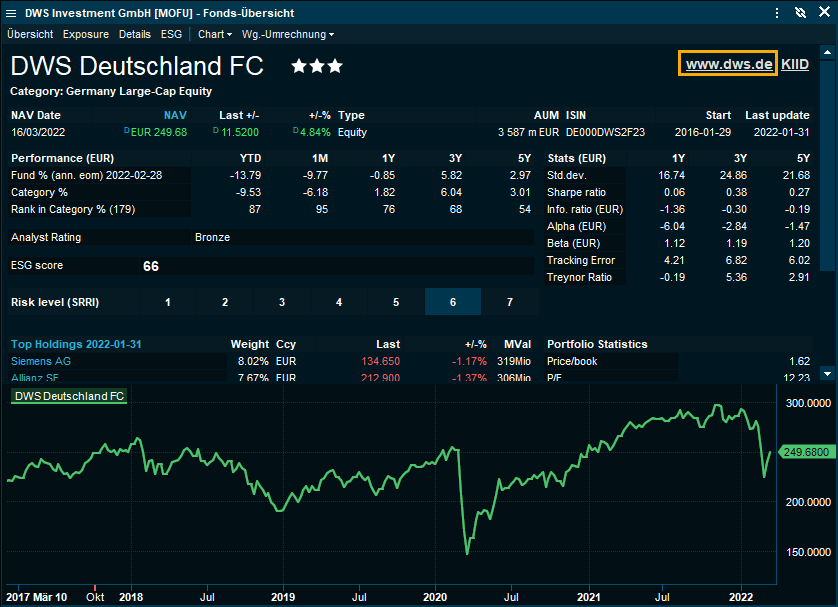 Die Homepage der KVG des Fonds finden Sie in der oberen rechten Ecke des Fensters. Klicken Sie einfach auf den Link und Sie werden direkt zu Ihrem Webbrowser weitergeleitet, wo die entsprechende Homepage geöffnet wird.