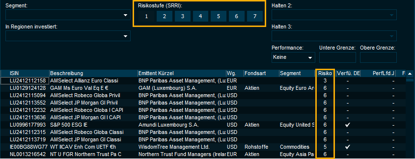 SRRI-Risikostufe des Fonds als Spaltenwert