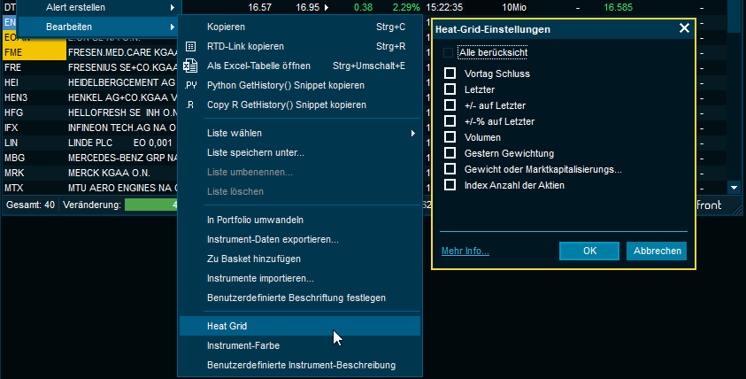 Klicken Sie mit der rechten Maustaste auf eine beliebige Spaltenüberschrift und wählen Sie "Heat Grid".