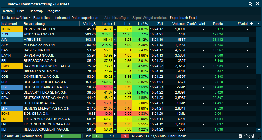 Der höchste Wert einer Spalte wird mit dem hellsten Grünton und der niedrigste mit dem tiefsten Rotton hervorgehoben.
