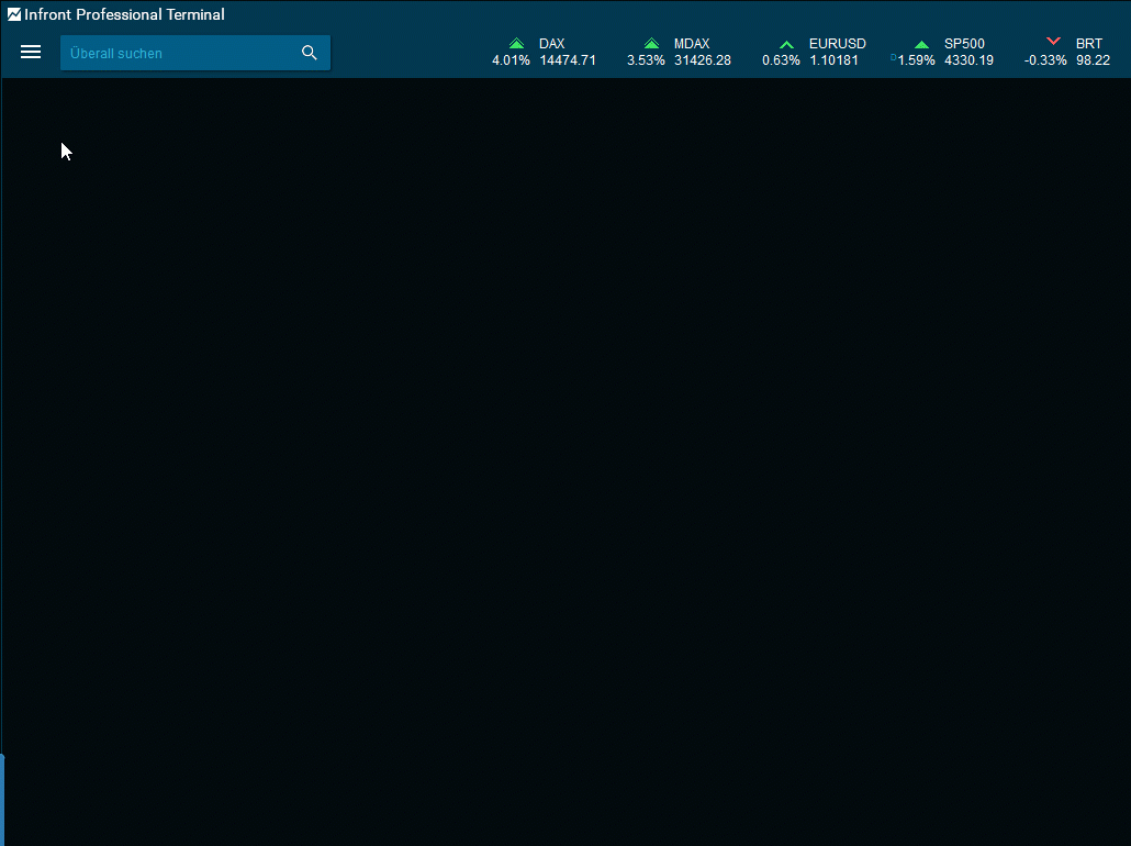 Suche über Tastatur | Wenn das Fenster ausgewählt ist, beginnen Sie mit der Eingabe auf Ihrer Tastatur, um in der Liste zu suchen. Sobald Sie <RETURN> auf Ihrer Tastatur betätigen, wird das Instrument oben im Marktfenster angezeigt. In (8.7.0051) Benutzeroberfläche erfahren Sie, wie Sie die Suche in diesem Fenster konfigurieren. |