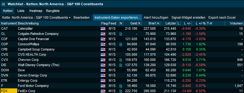 Dadurch wird ein neues Signal-Widget in der Hauptsymbolleiste von Infront Professional Terminal hinzugefügt, das nur die interessantesten Instrumente der von Ihnen gewählten Kette anzeigt.