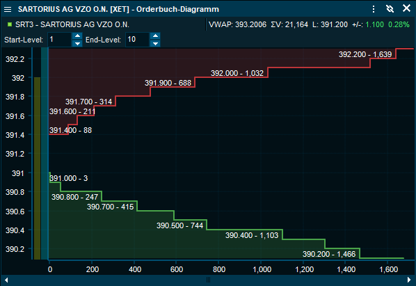 Klicken Sie mit der rechten Maustaste auf ein Instrument > "Charts & Visualisierung" > " Orderbuch-Diagramm".