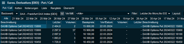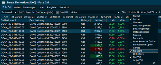 Erweiterte Filtereinstellungen für bestimmte Derivatemärkte