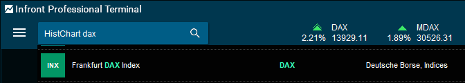 Geben Sie "histchart" ein und bestätigen Sie mit <RETURN>. Suchen Sie nach dem Instrument, für das Sie den historischen Chart anzeigen möchten. Es gibt noch viele weitere Befehle, die Sie verwenden können.