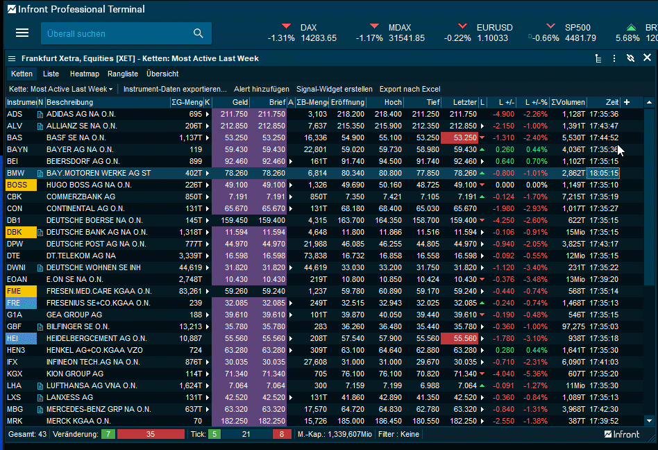 Infront Professional TerminalName der Anwendung für das Quotes-Modul.