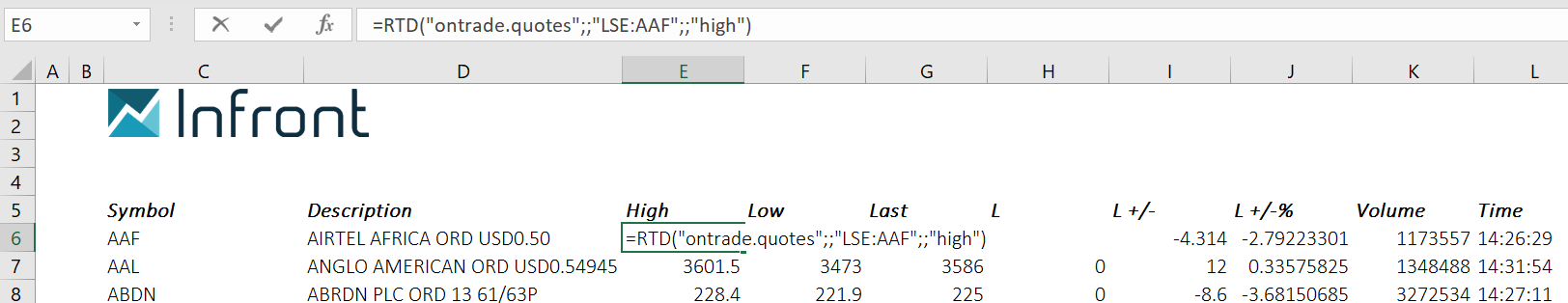 =RTD("ontrade.quotes","", "LSE:AAL","", "last")