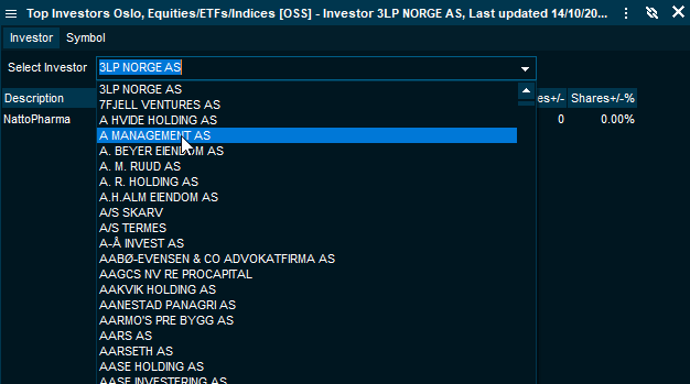 - Klicken Sie mit der rechten Maustaste auf ein Instrument an der Osloer Börse > wählen Sie "Instrument-Details" > "Top-Investoren".