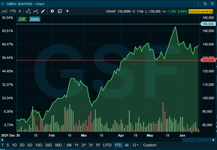 In the example below, we have alerts triggering if the price exceeds 155, in which case we will sell, and a second alert at triggering if the price falls below 128 in which case we will buy more at low levels.