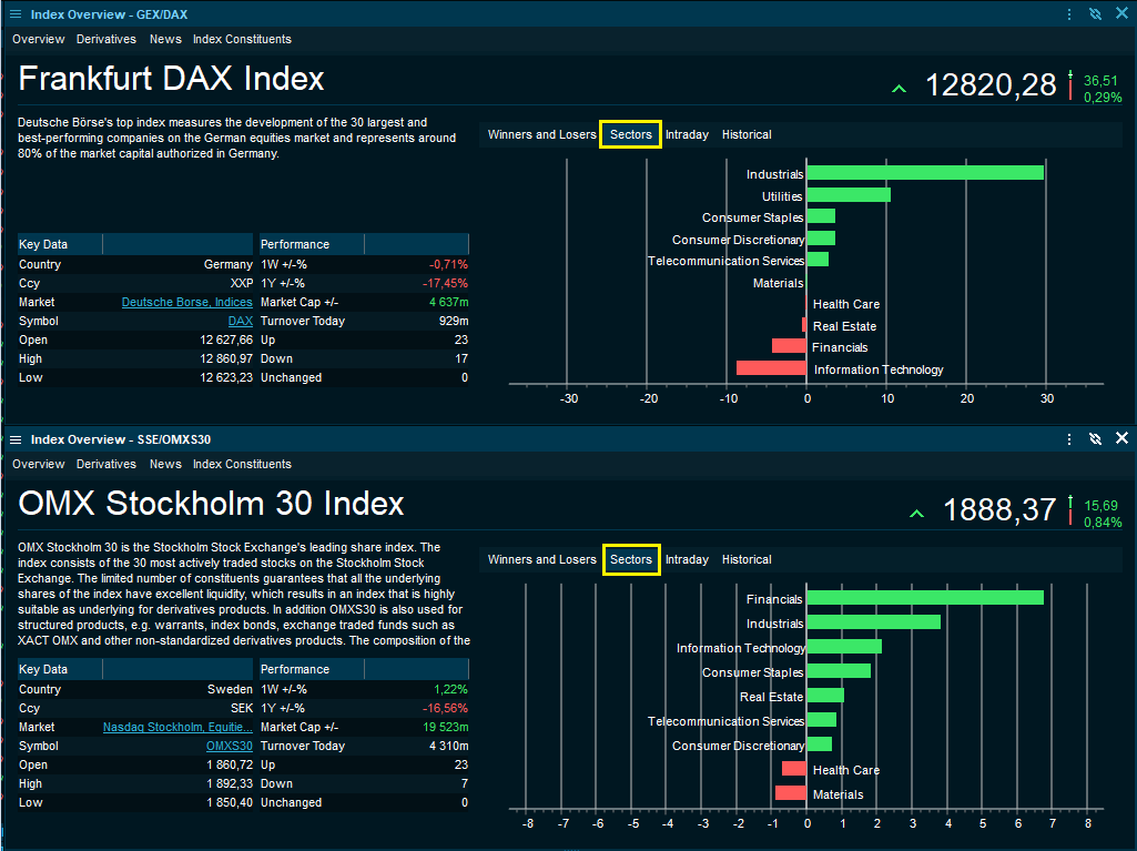 The Index overview now features a new "Sectors" tab visualising which sector is moving the index with its respective contribution.