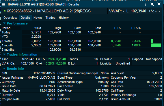 "Bond reference data" from WM include new columns data and provides reference and price data points on duration, yields, convexity and many more as well as loan terms such as callable properties of the loan and at what time these can be called at the issuer's discretion.