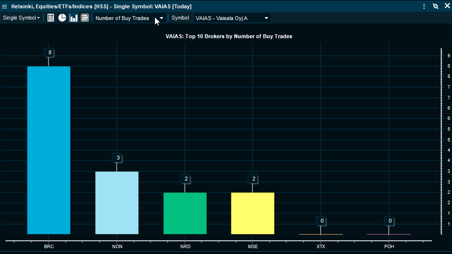 - Open one of the markets that display "Broker Statistics" > right-click one of the companies listed on the corresponding stock exchange > select "Trades & Orders" > go to "Broker Statistics".