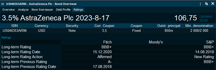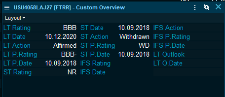 A new tab was added to the "Bond Overview", consolidating the information for the specific bond. Long-term ratings are displayed on the "Overview" tab: