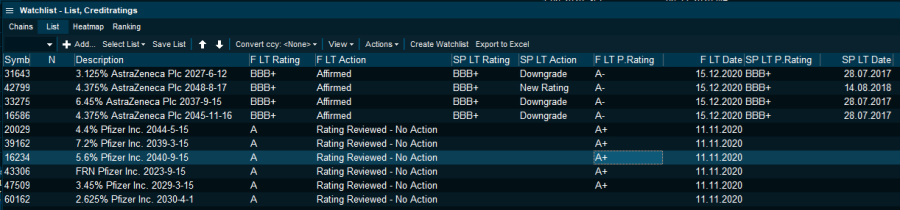 - Feeds are available from each agency so you can typically filter out S&P's most recent upgrades by date, with a stable outlook and a current rating of A+ and above if you have a conservative mandate.