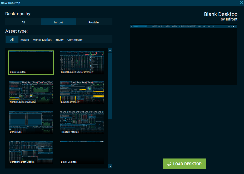 Or click the "Add Desktop" button on the bottom left of Infront Professional Terminal.