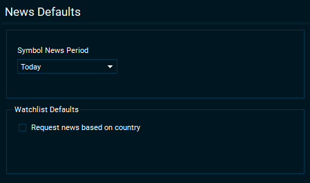 Symbol News Period | Set the relevant period for symbol news in the "Symbol" window. |