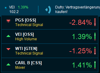 Noise reduction technology analyzes market data in your workspace and informs about interesting price movements and events.
