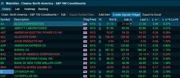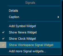 Add a "Chain" widget: From a "Market" window or a "Watchlist" window, go to the chain tab, click the "Create Signals Widget" button in the toolbar.