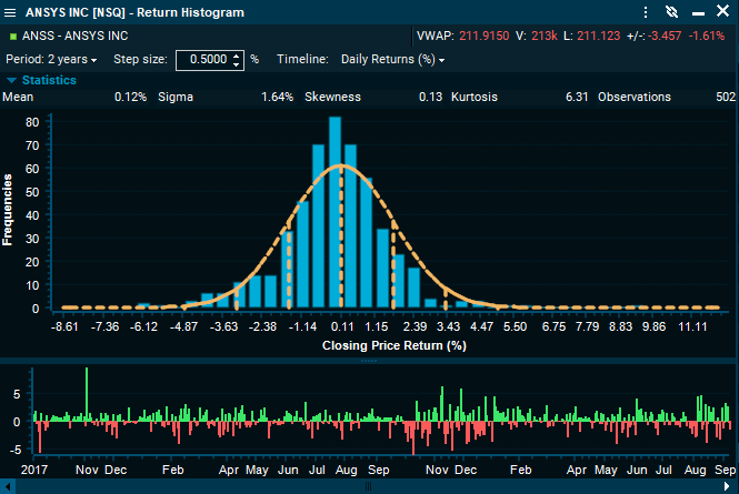 Right-click an instrument > "Charts & Visualizations" > "Return Histogram".