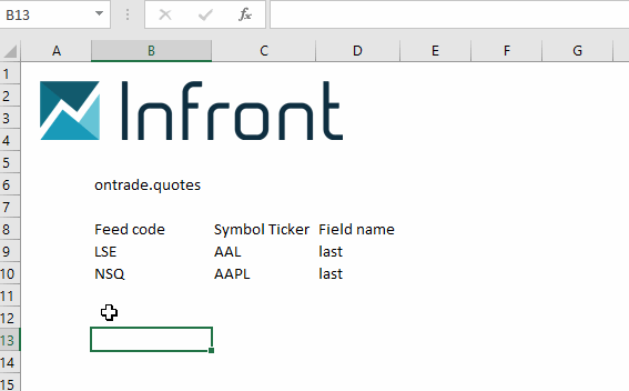 With the following formula (cell B13) to get the Last price for an instrument: