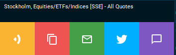 The "Share" command creates a link, an e-mail or a tweet which allows you to share the content of the window with other users. A screenshot of the window will be generated. Also, underneath the screenshot of the window, a link will be generated allowing any user of theInfront Professional Terminal to open the same window in their installation of the Infront Professional Terminal.