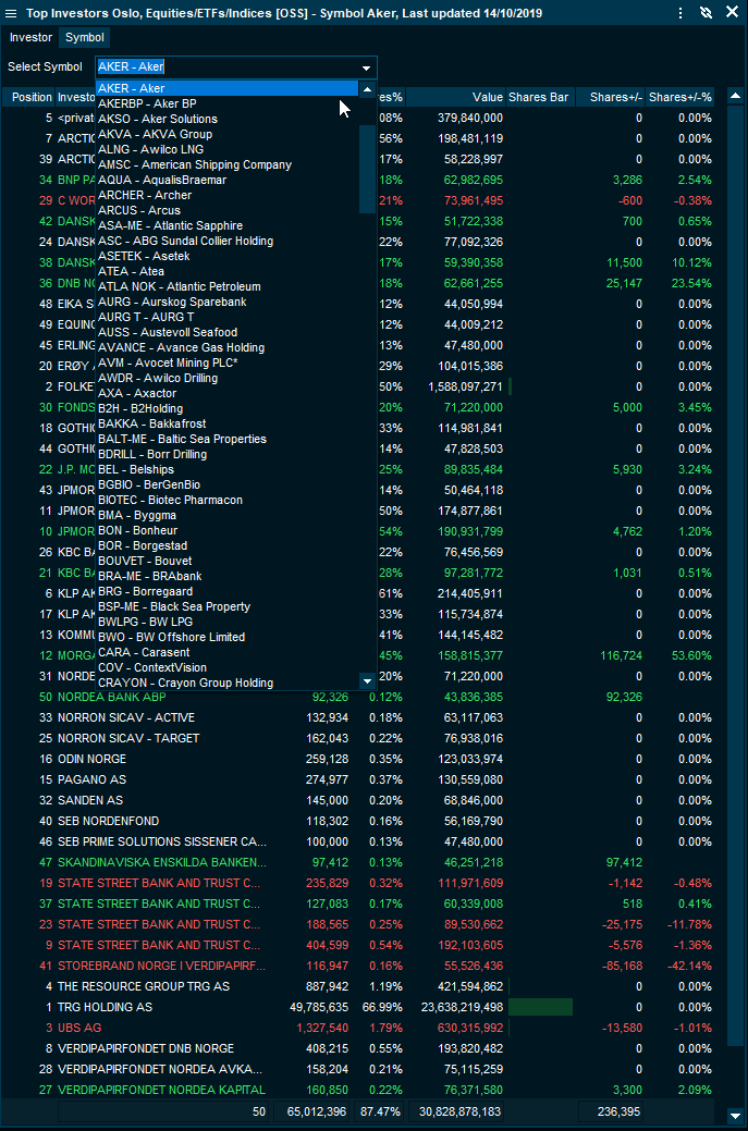 - Right-click an instrument on Oslo Stock Exchange > select "Instrument Information" > "Top Investors".