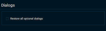 Select the checkbox to restore all warnings and other information dialogs where you have selected "Don't show this message again."