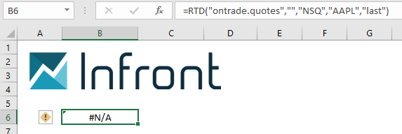 This is a common Excel error that is not related to Infront Professional Terminal, but a known problem that can occur in Microsoft Excel. We highly recommend you to run Infront Professional Terminal before you open any Excel spreadsheets containing RTD links. This is necessary for the RTD links to work.