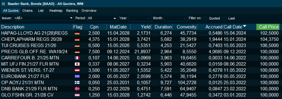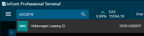 WKNs are also supported as a new column which is searchable across terminal windows and functions, allowing you to quickly identify instruments based on WKN: